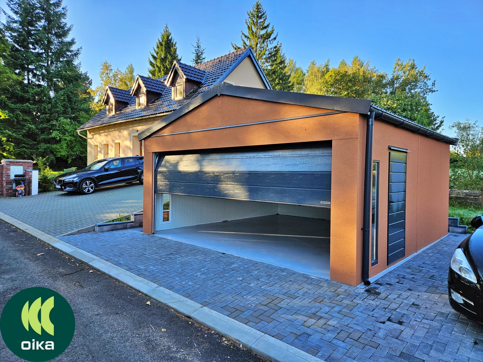 Garáž se zhardním domkem. Celá realizace je na klíč postavena za 1 den bez potřeby těžké techniky. Až 60% úspora oproti zděné stavbě.