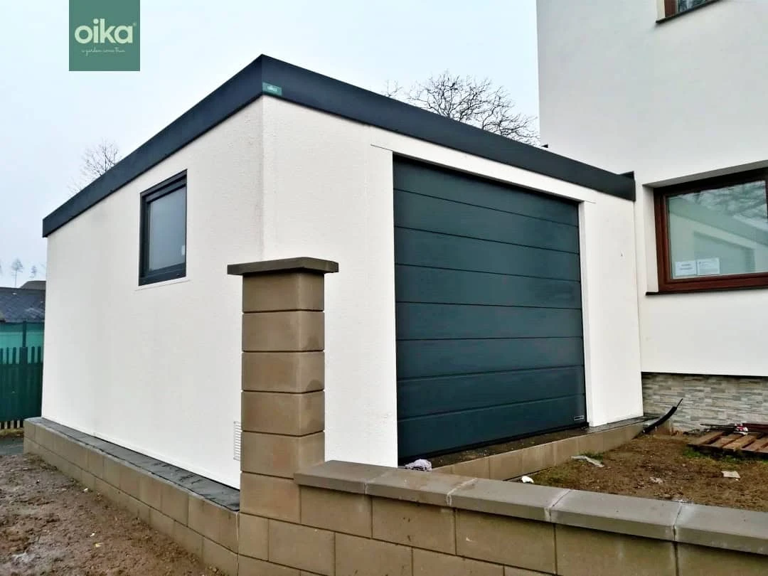 Výhodou montovaných garáží je ich pestrá ponuka farebných kombinácií fasády, atiky a strešnej krytiny. Vyberať môžete aj zo širokého množstva rozmerových radov aj s voľbou strany spádu strechy, a to nielen na prednú či zadnú stenu garáže, ale aj do strán, čo umožní estetické doladenie garáže na kľúč k domu. Čisté línie garáže, spoločne s atikou, ktorá elegantne skrýva odkvapový systém a zároveň vytvára plynulý prechod medzi stenou a strechou, predurčujú garáže oika® k mnohostrannej využiteľnosti, a skvele doplnia ako moderné novostavby, tak súčasnú rôznorodú zástavbu starších zástavieb.