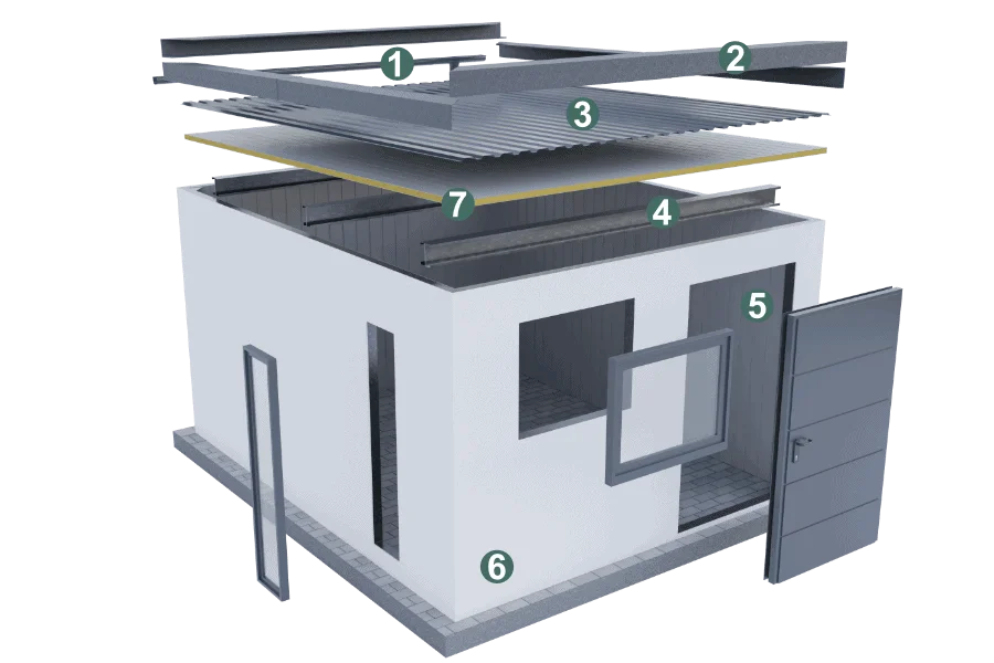Strešné nosníky tvoria žiarovo pozinkované oceľové profily s hrúbkou 2 mm. Základom je kvalitne spracovaná oceľ, ktorá je pre menšie stavby profilovaná do tvaru C. Pre väčšie stavby, alebo tam kde je potrebná väčšia únosnosť, sú k sebe spojené dva nosníky C profilu zrkadlovo.